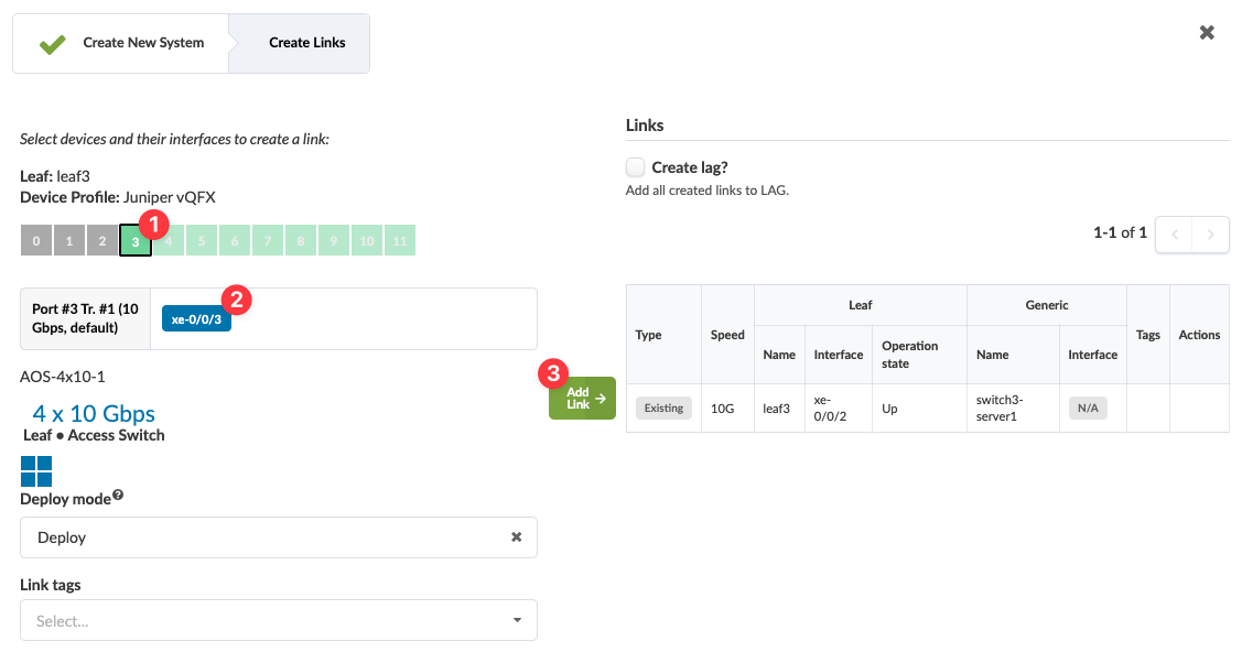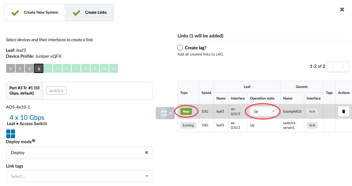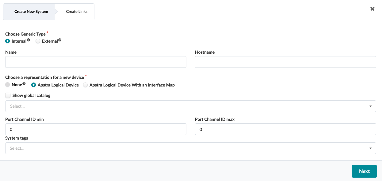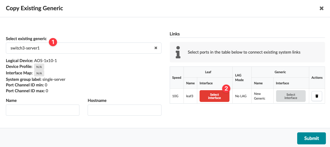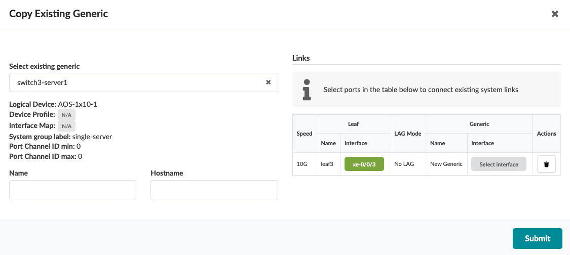 Systems that are not managed by Apstra and that are part of a rack topology are called (internal) generic systems. You specify their roles with tags. You can create an internal generic system by adding a new one or by copying an existing one.