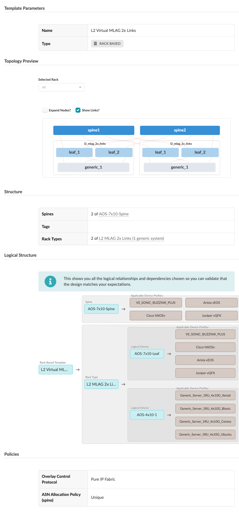 Click a template name to go to its details. The example below is for the L2 Virtual MLAG 2x Links.