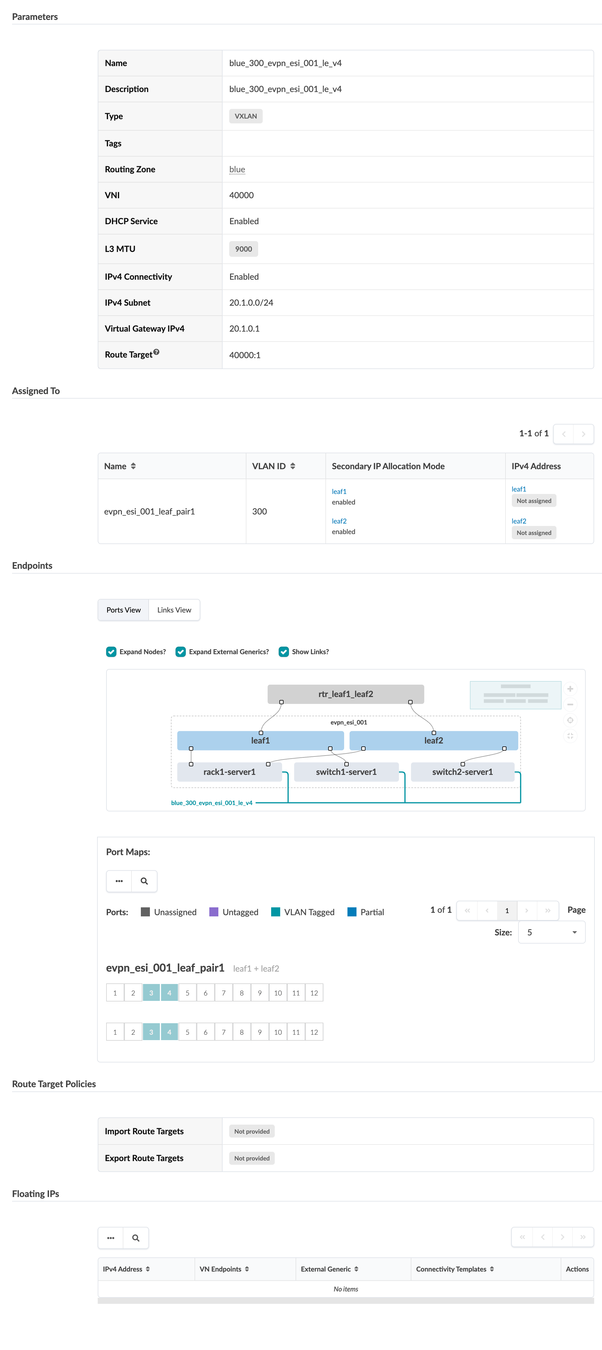 | VLAN ID (on leaf devices) | VLAN ID |