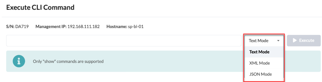 You can execute CLI commands from within a staged or active blueprint (shown in our example), or from the Devices > Managed Devices page.