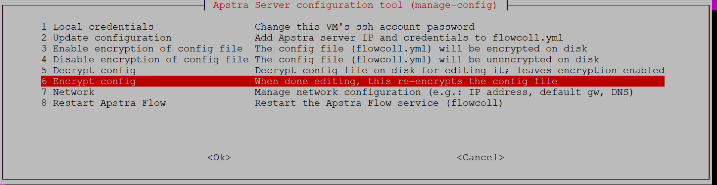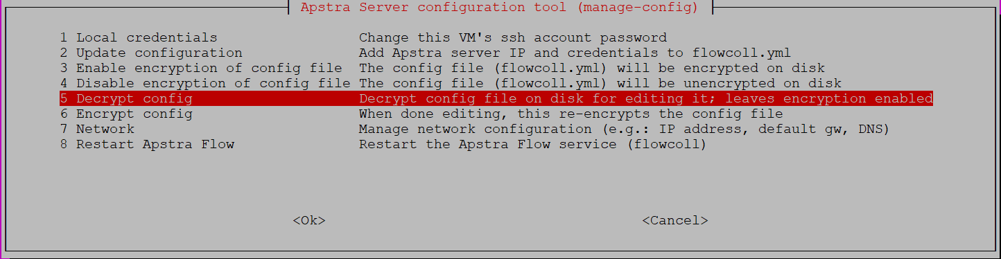 You might need to update your encrypted configuration file with new values in certain scenarios. To modify your configuration information, you must first decrypt the file for editing and then re-encrypt the file with the Apstra Server configuration tool.