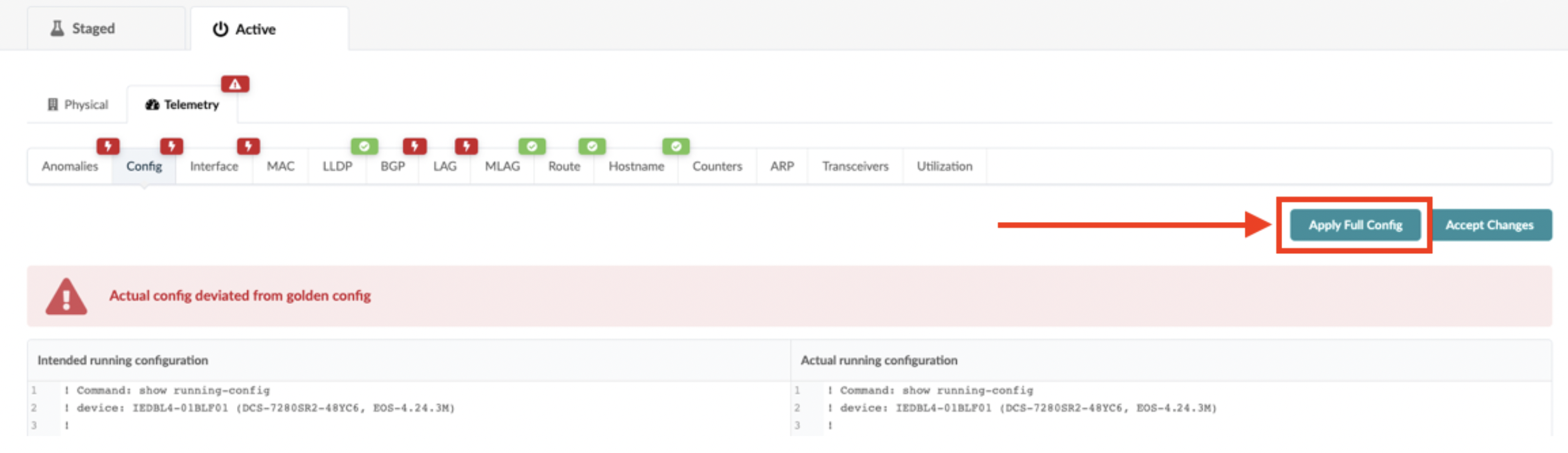 Apstra does not support 'hitless' rollbacks.