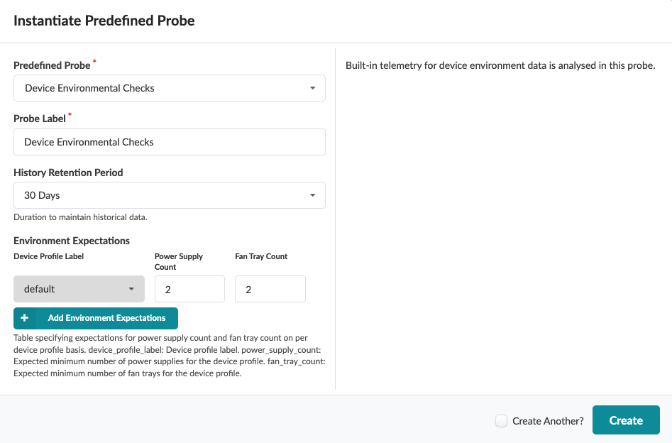 The device environmental checks probe is enabled only for Juniper devices.