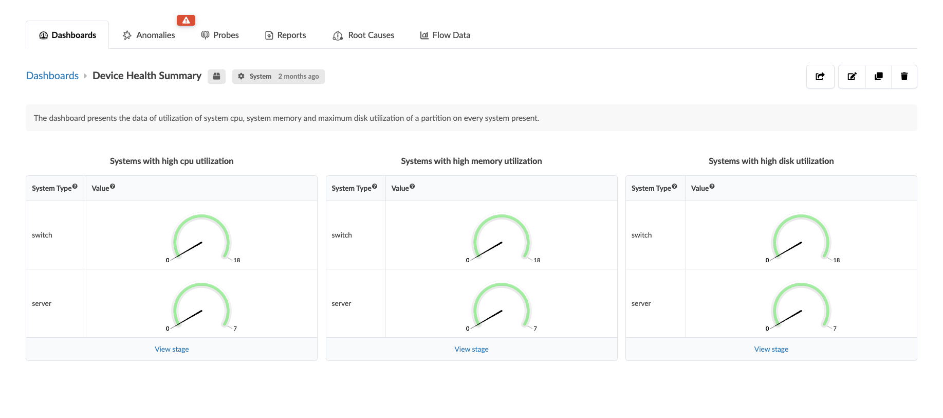 In Juniper Apstra 6.0, the Device System Health Probe is enhanced to monitor generic systems, or GPU servers where a compute agent is installed. This means you can monitor metrics like CPU, memory, and disk utilization for both network devices and generic systems (GPU servers) using the same probe.