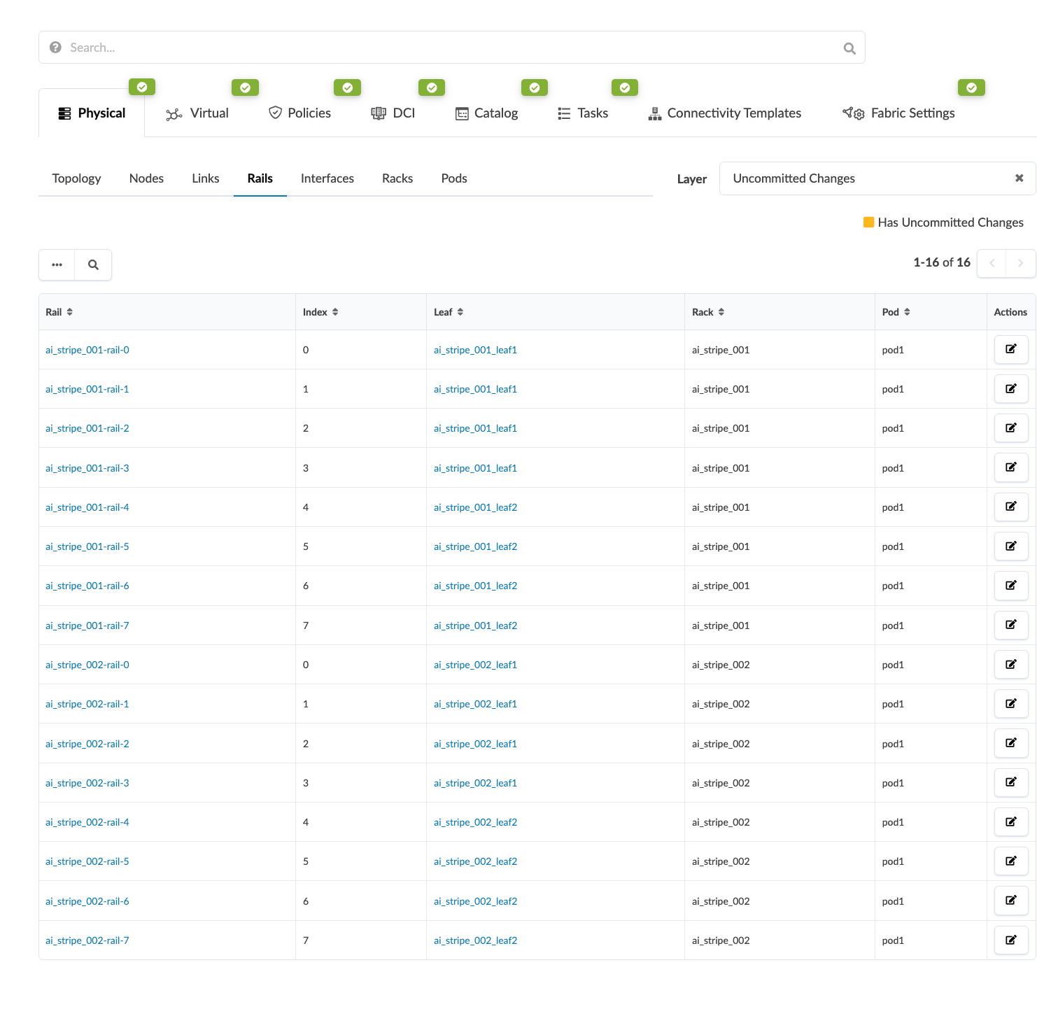 In a Rail Optimized Stripe Architecture, a GPU Backend fabric provides the infrastructure for GPUs to communicate within an AI cluster. For more information, see GPU Backend Fabric.