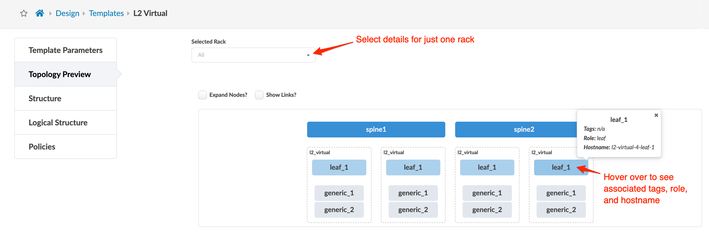 Click a template name to go to its details. The example below is for the L2 Virtual MLAG 2x Links.
