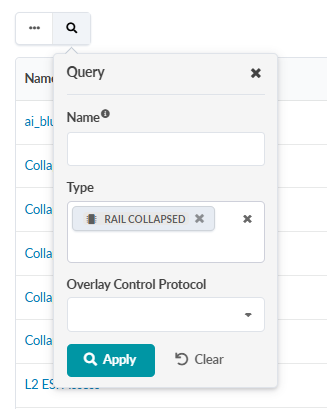 For example, to quickly find rail-collapsed templates, click the Search button at the top, select RAIL COLLAPSED from the Type drop-down list, then click Apply.