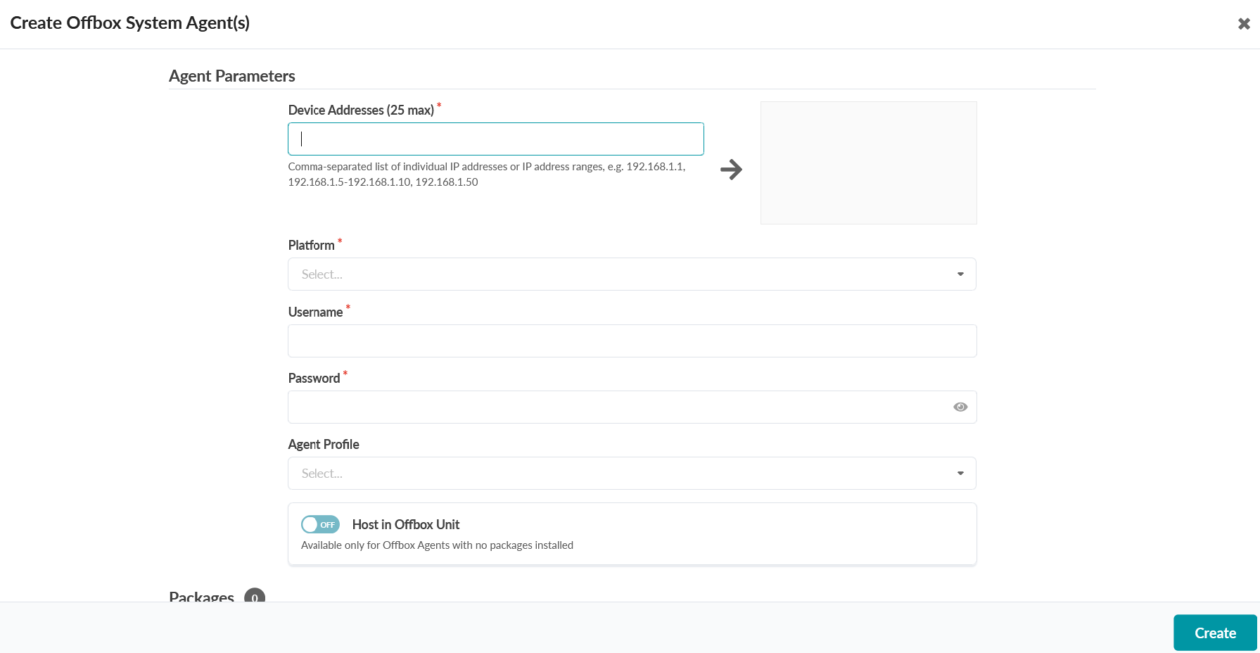Host in Offbox Unit is only available for offbox agents with no installed packages.
