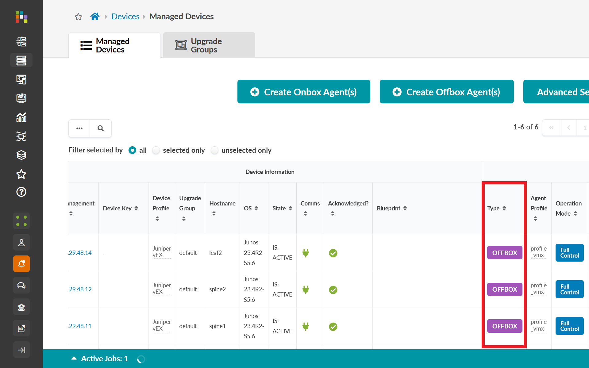 You can identify offbox agents in the table using the OFFBOX type in the Type column.