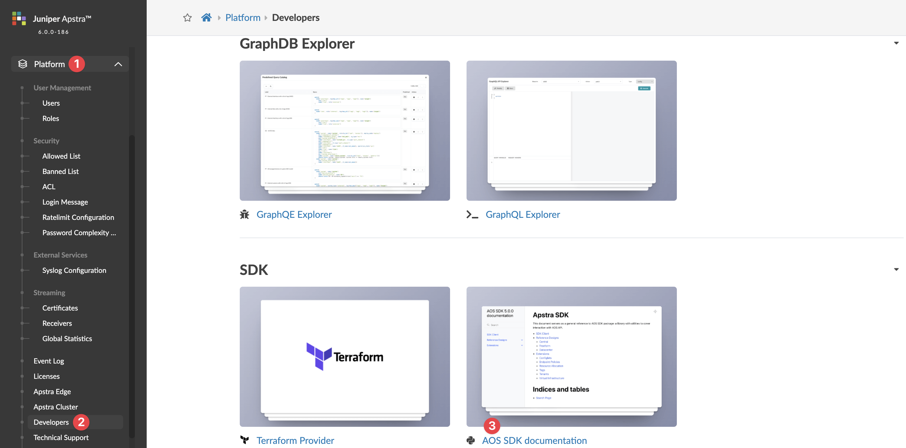 With Apstra's SDK you can deploy faster. You don't need to write the low level code from scratch. If you're integrating with any services, SDK can handle authentication, API calls and error-handling. You can write small scripts to use the many provided APIs to add automation. The SDK version matches the Apstra version (as of version 6.0.0).