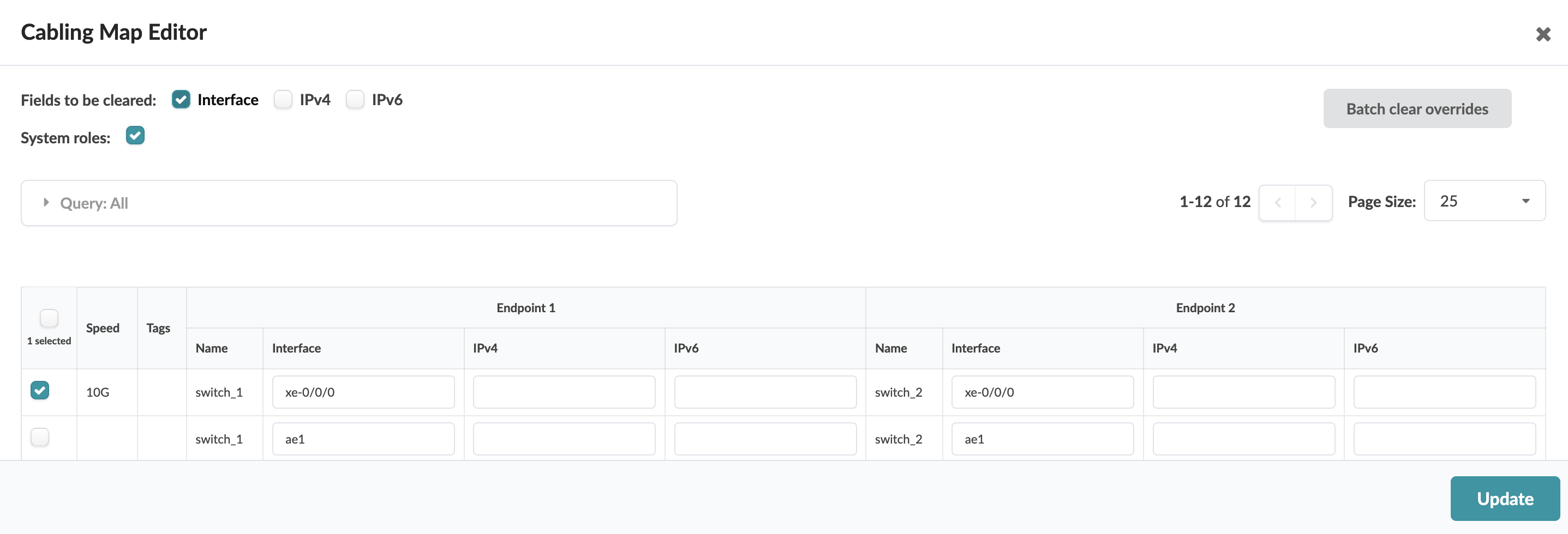 You can change one or more interfaces and IP addresses in the cabling map editor.