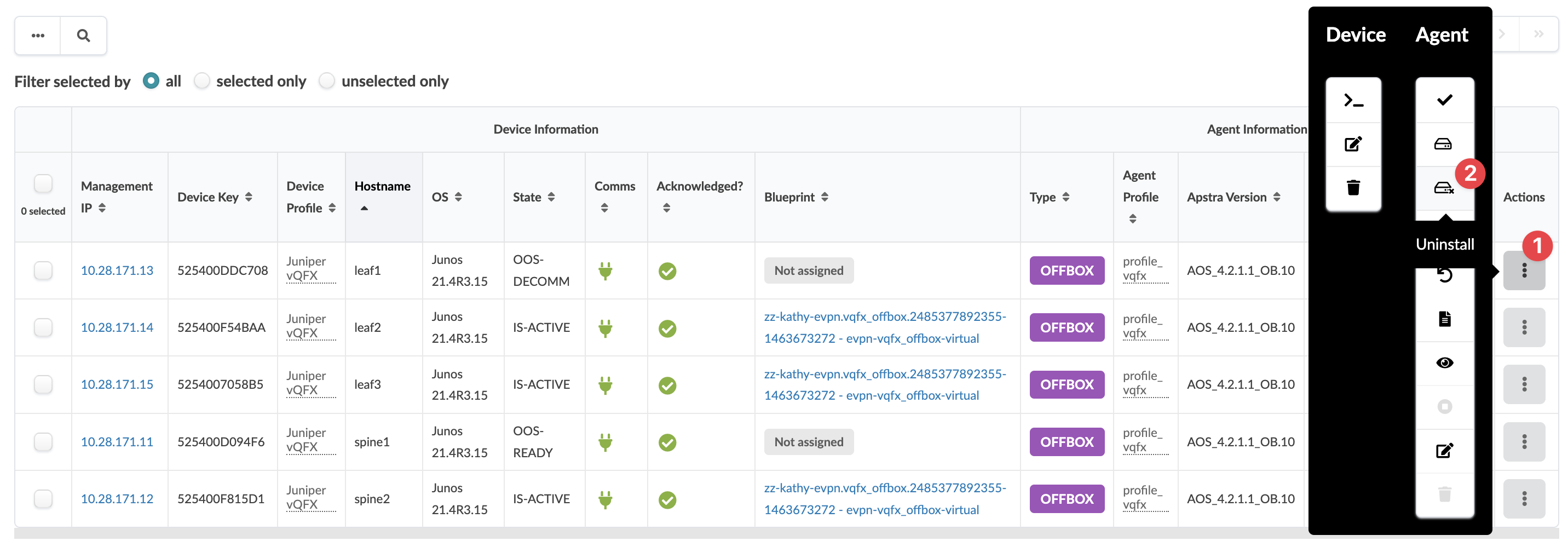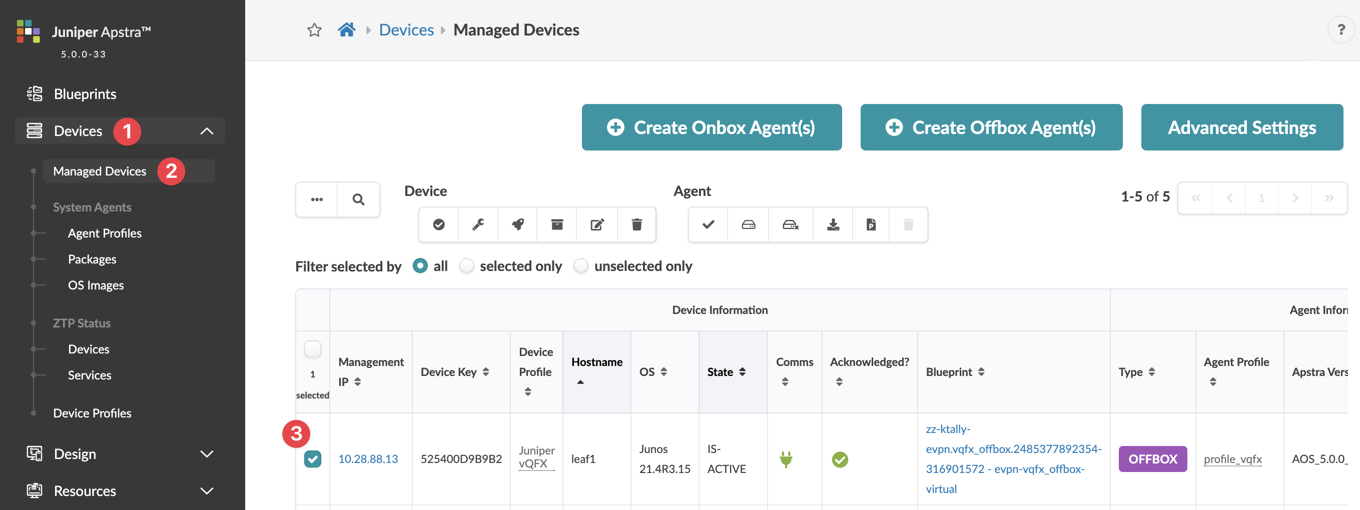 Devices and check the box for the device to remove from Apstra
