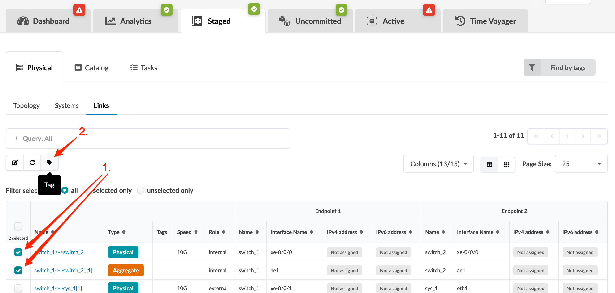 - Click Add/Remove Tags to stage the changes and return to the Links view.