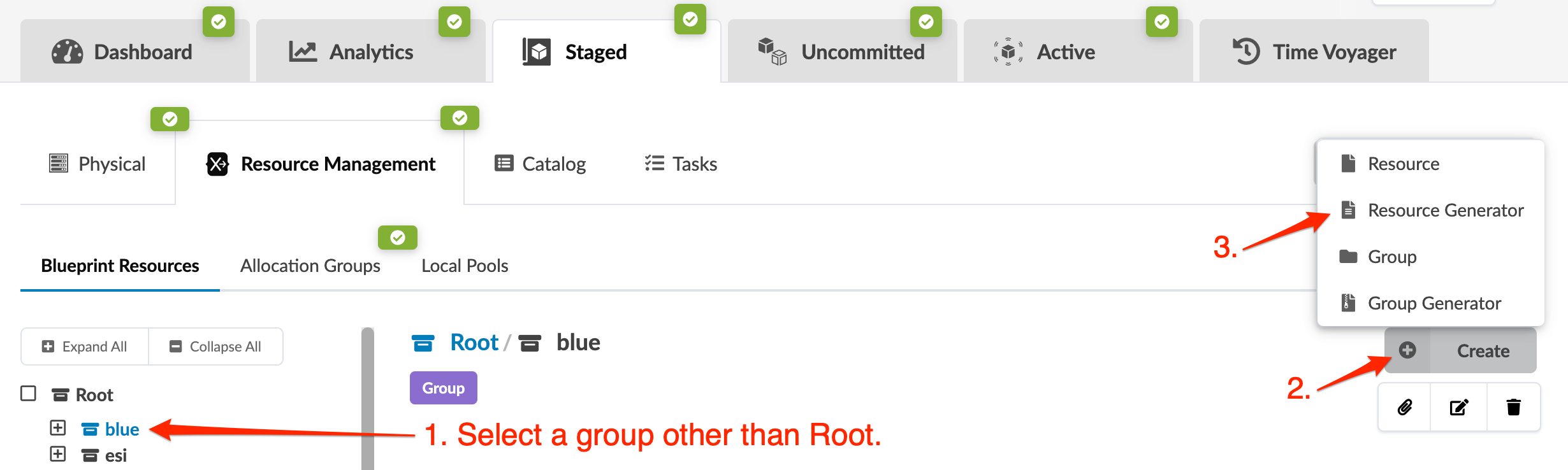 From the blueprint, navigate to Staged > Resource Management >
