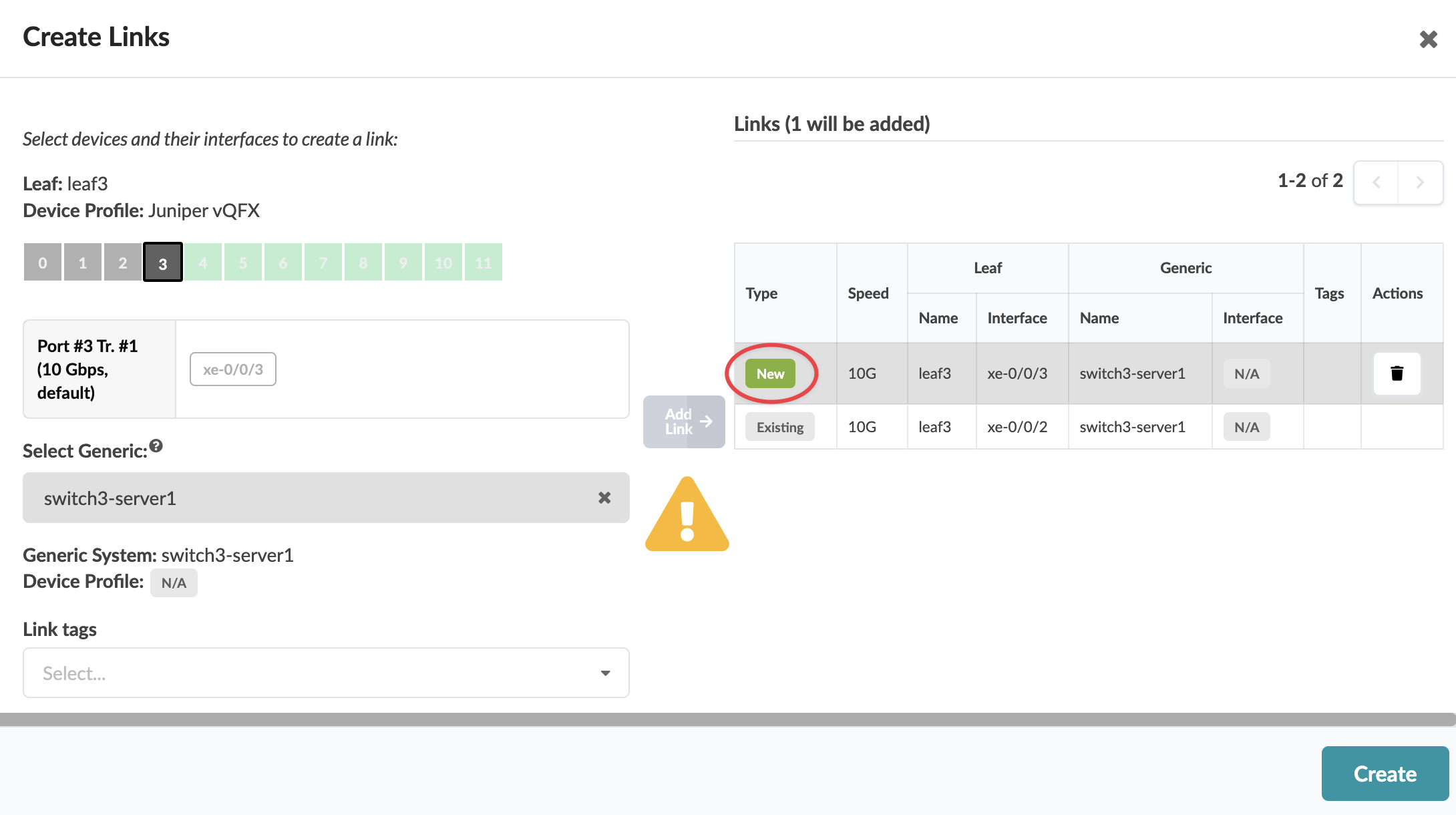 The new link is staged and you're returned to the Topology view.