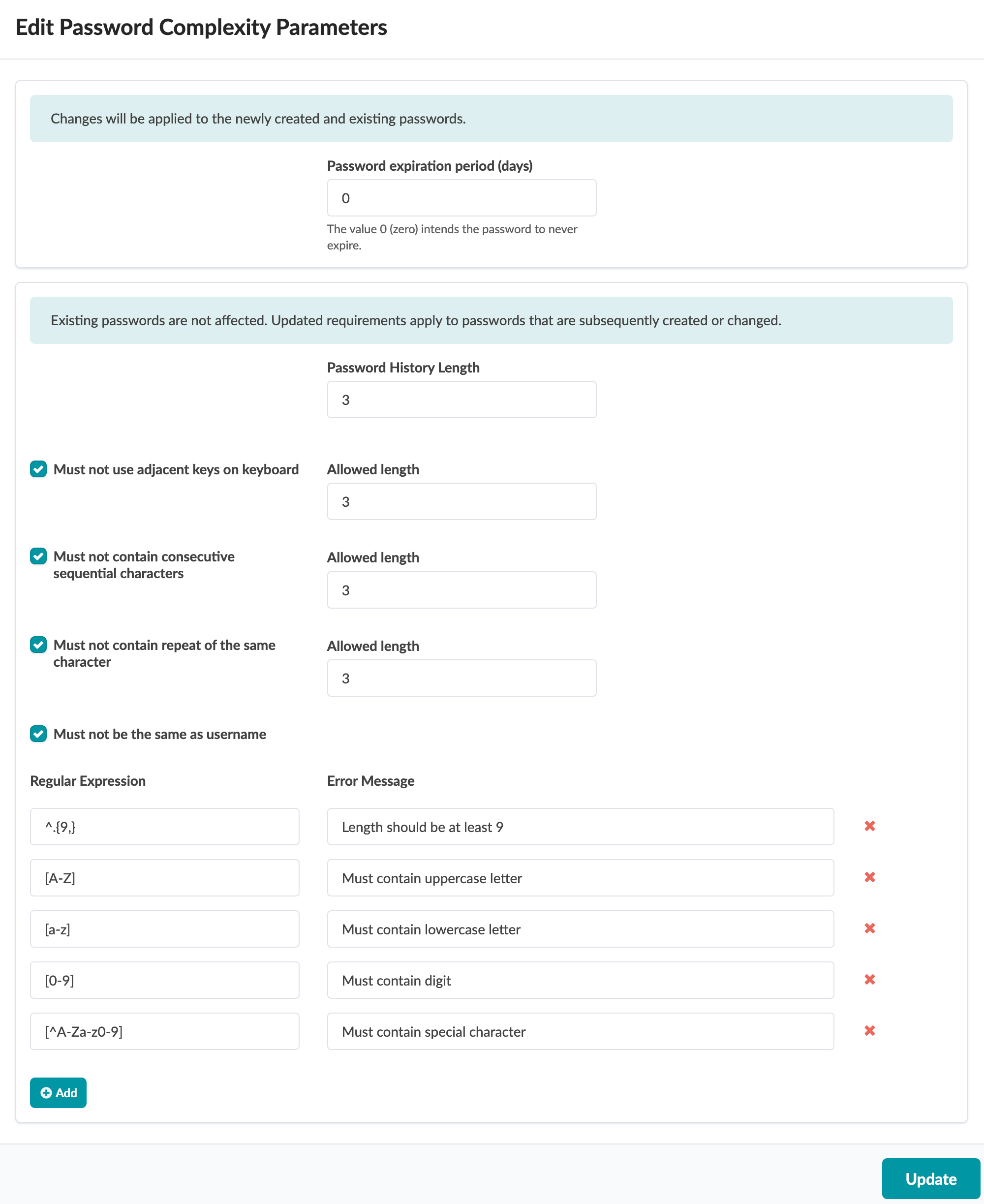 Update Password Complexity Requirements