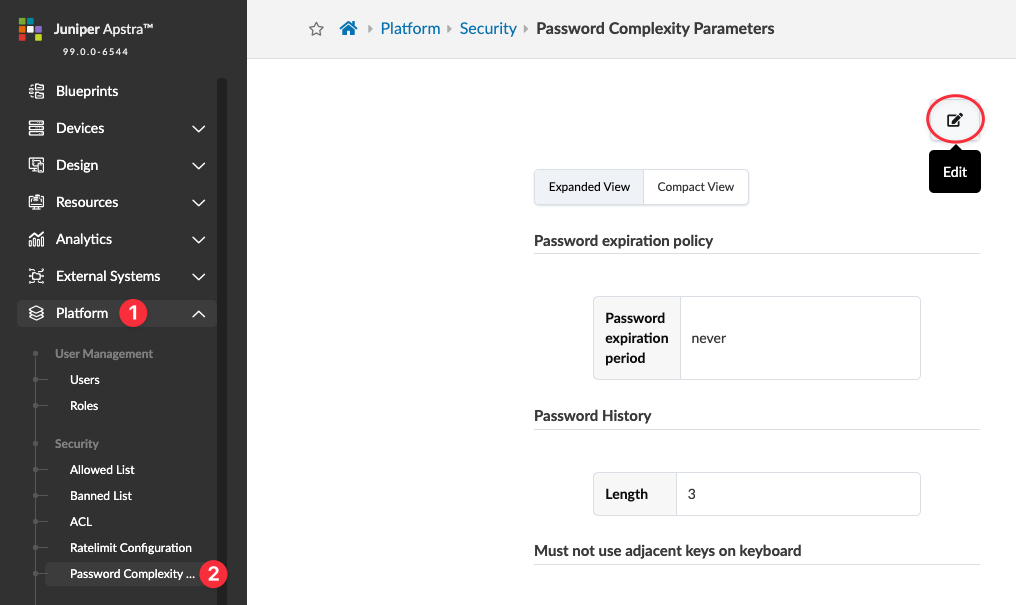 The changes are completed and you're returned to the Password Complexity Parameters page.