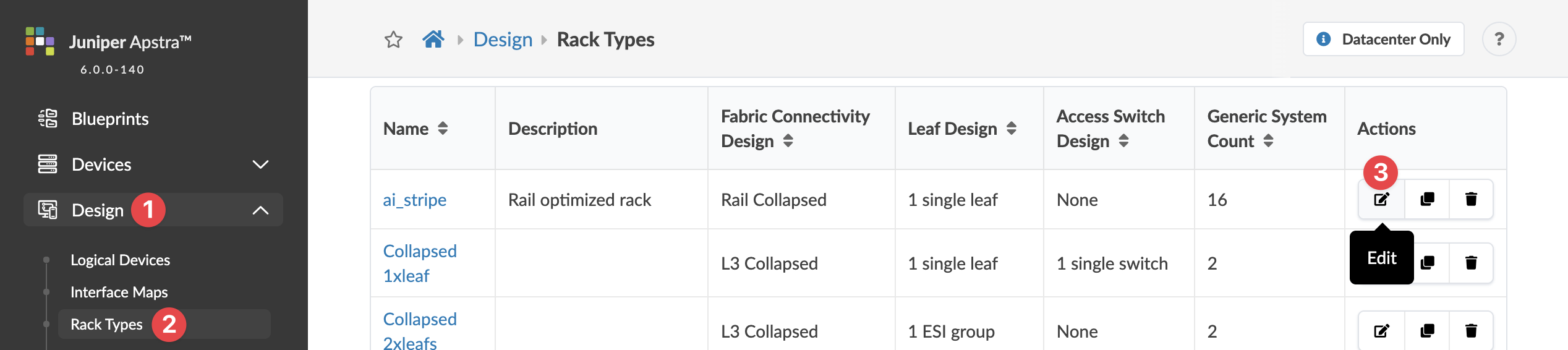 To change a rack type used in a blueprint, update the rack and replace the rack type with