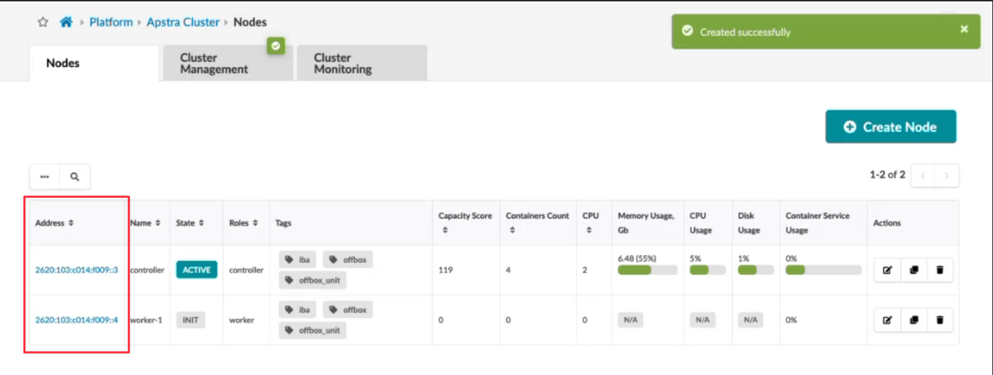 Starting in Apstra 6.1, you can enable IPv6-based management for the worker nodes that you're adding to the Apstra cluster. For more information, see Enabling IPv6-Based Management of the Apstra Cluster and Devices.