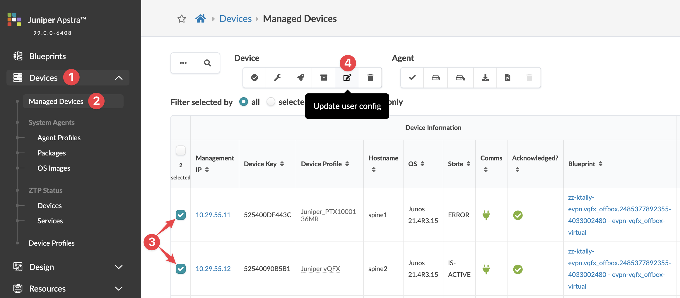 Change Device Profile from Managed Devices Table