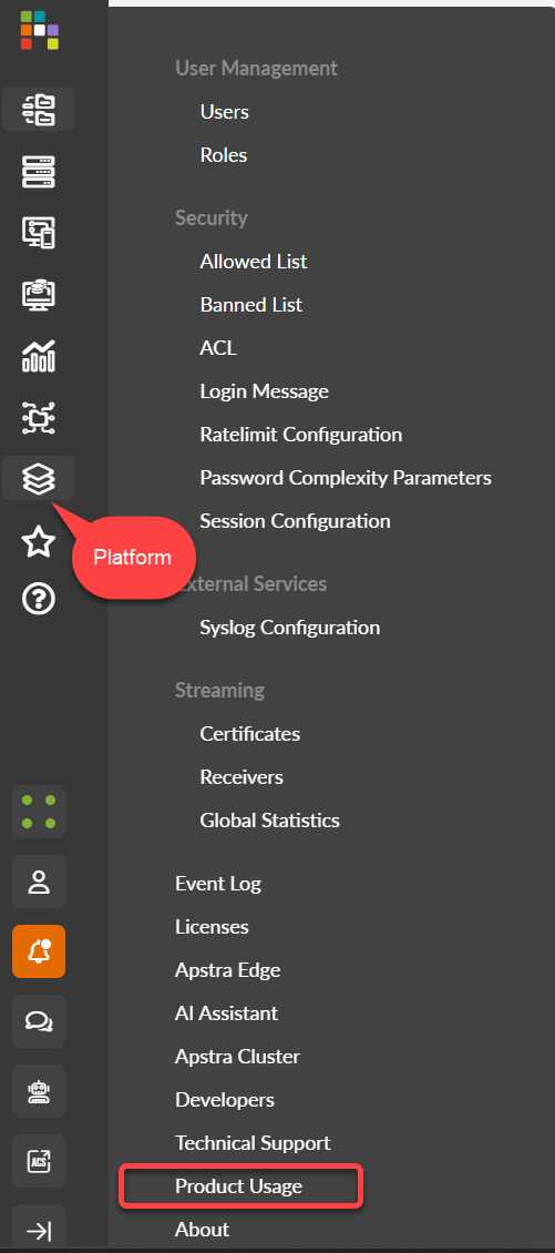 From the left navigation menu in the Apstra GUI, navigate to Platform > Product
