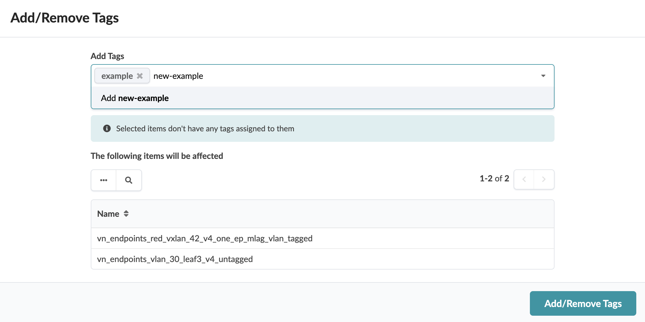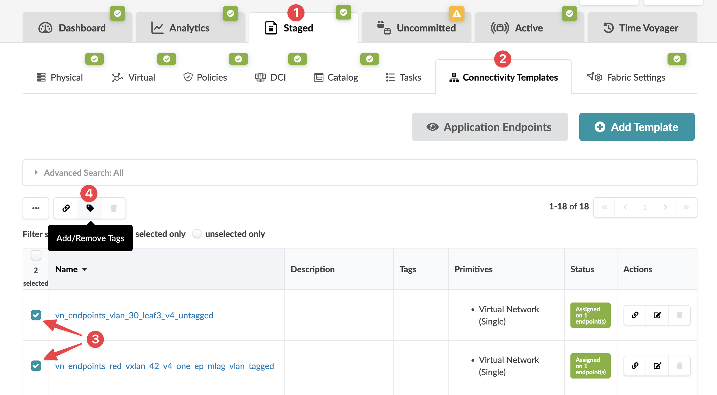 When you create connectivity templates you have the option of adding tags. After you've created a connectivity template, you can add or remove tags to it as shown below.