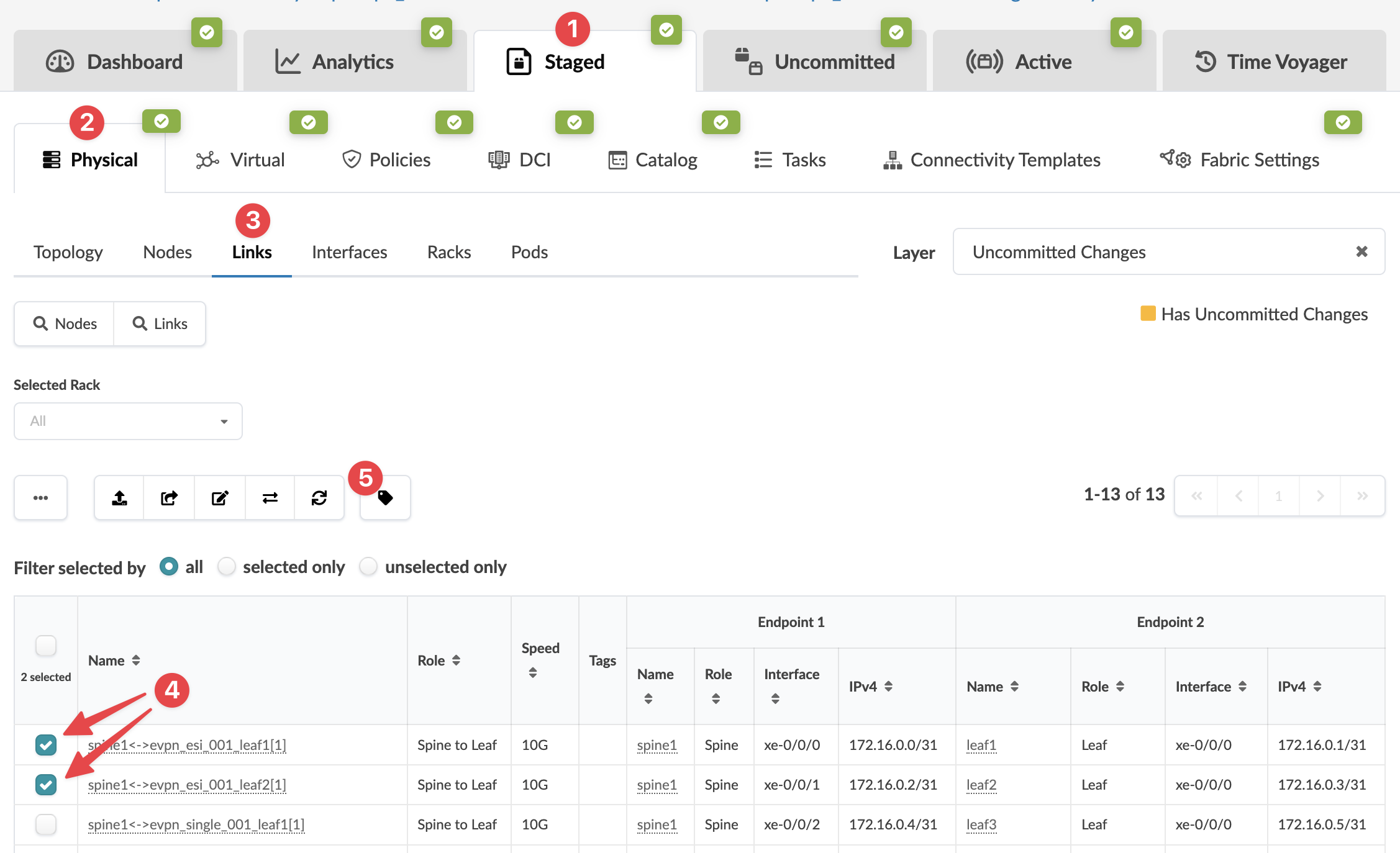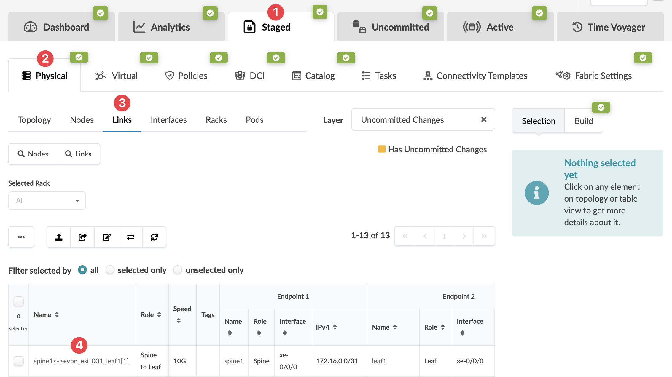 When you're ready to activate your changes, go to the Uncommitted tab to review and commit (or discard) your changes.