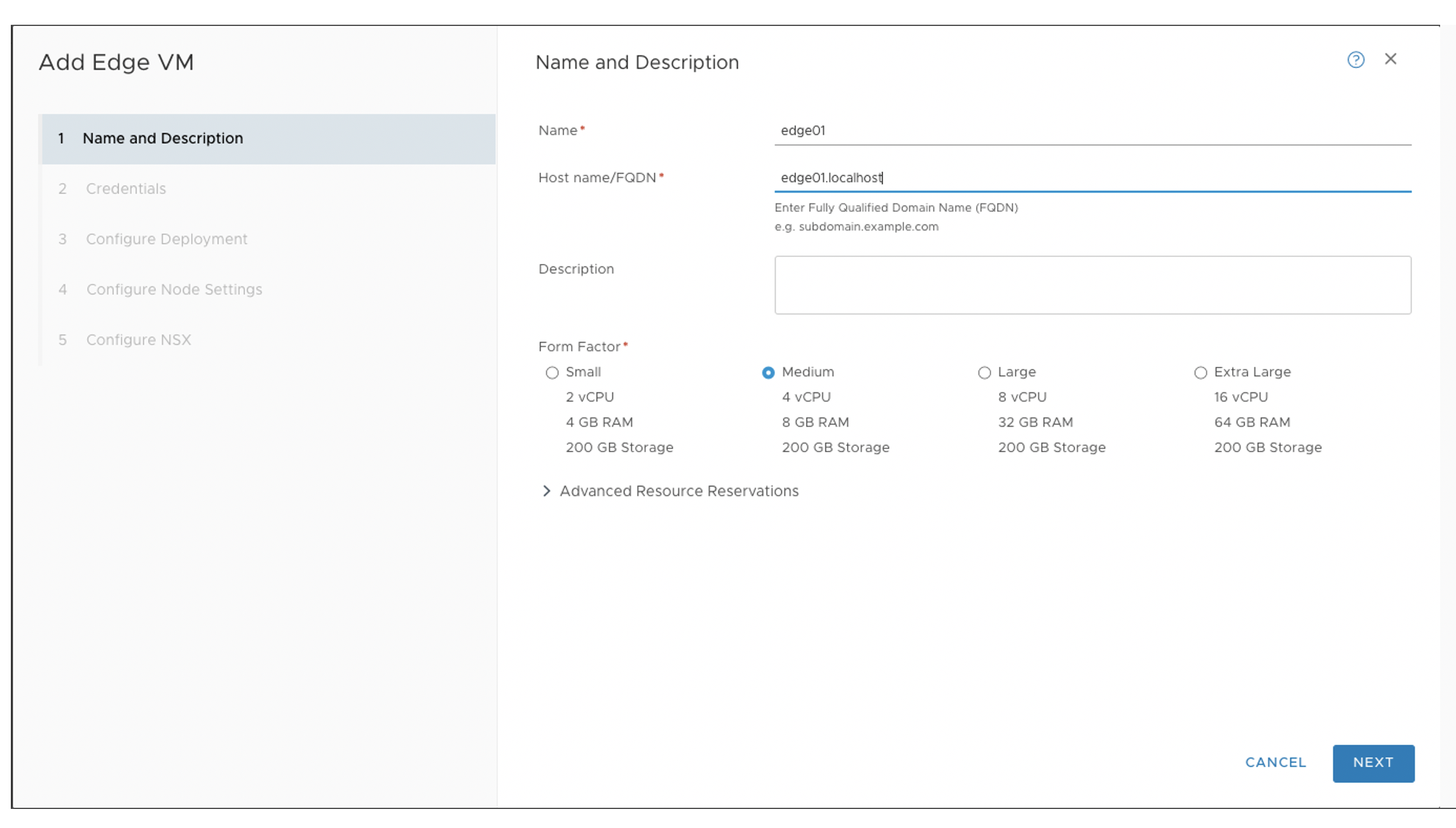 - Now create the NSX-T Edge VM in NSX Manager UI as below. It is used as the
