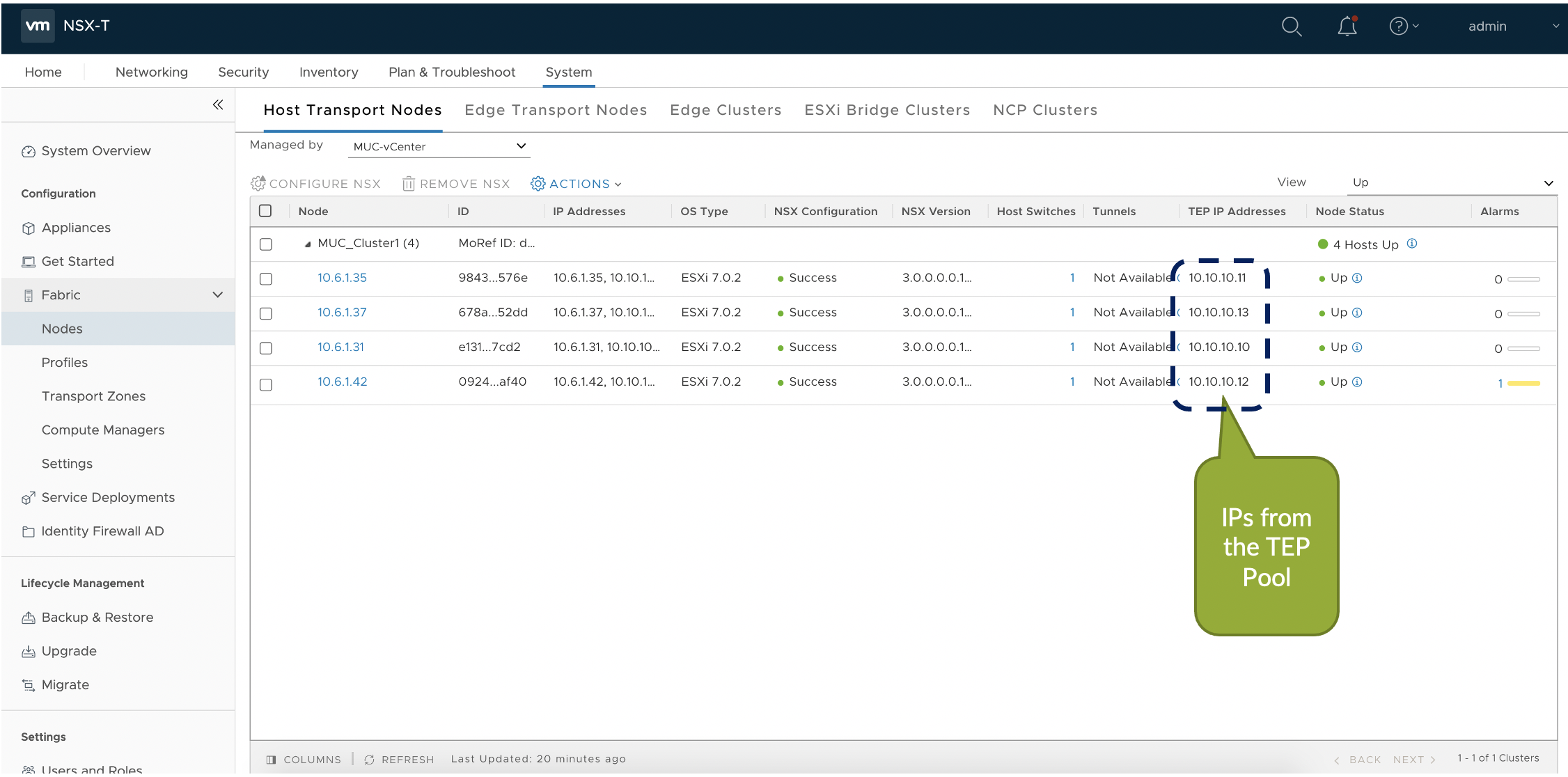 - After NSX-T is configured on the Transport nodes, a Tunnel endpoint(TEP) IP pool