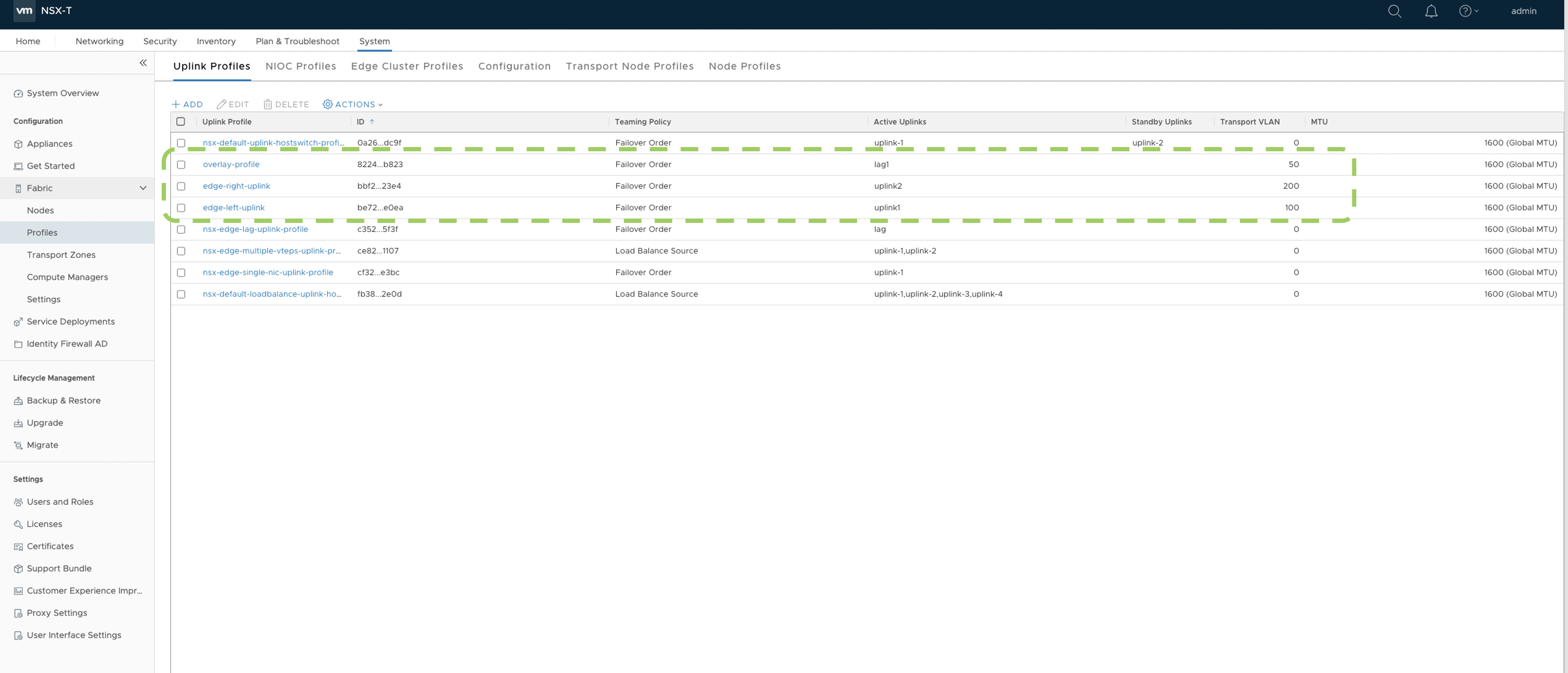 - Create respective Uplink profiles for Overlay and VLAN Transport Zones in NSX