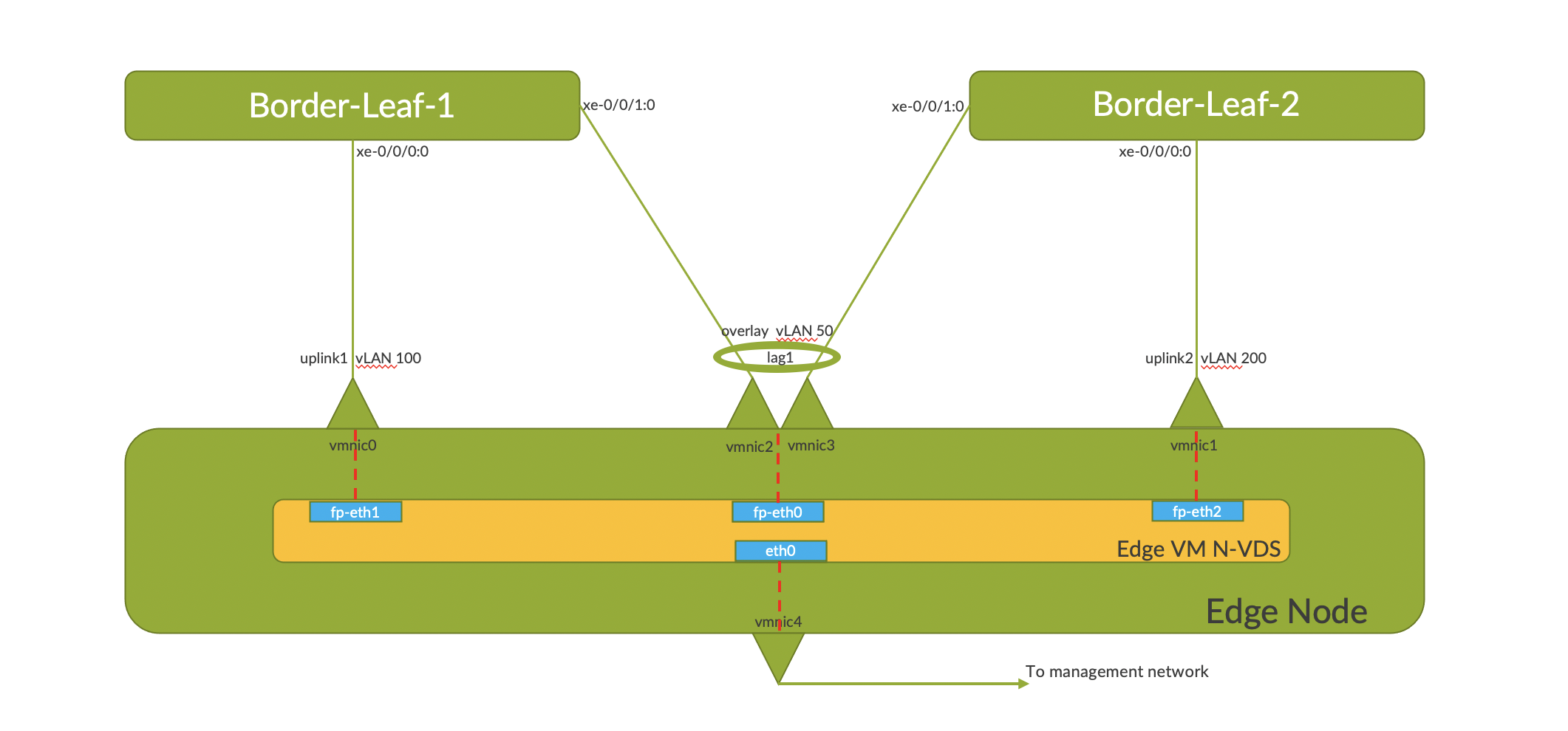 Let's say NSX-T Edge VM uplinks are connected to ToR leaf devices via VLAN Transport