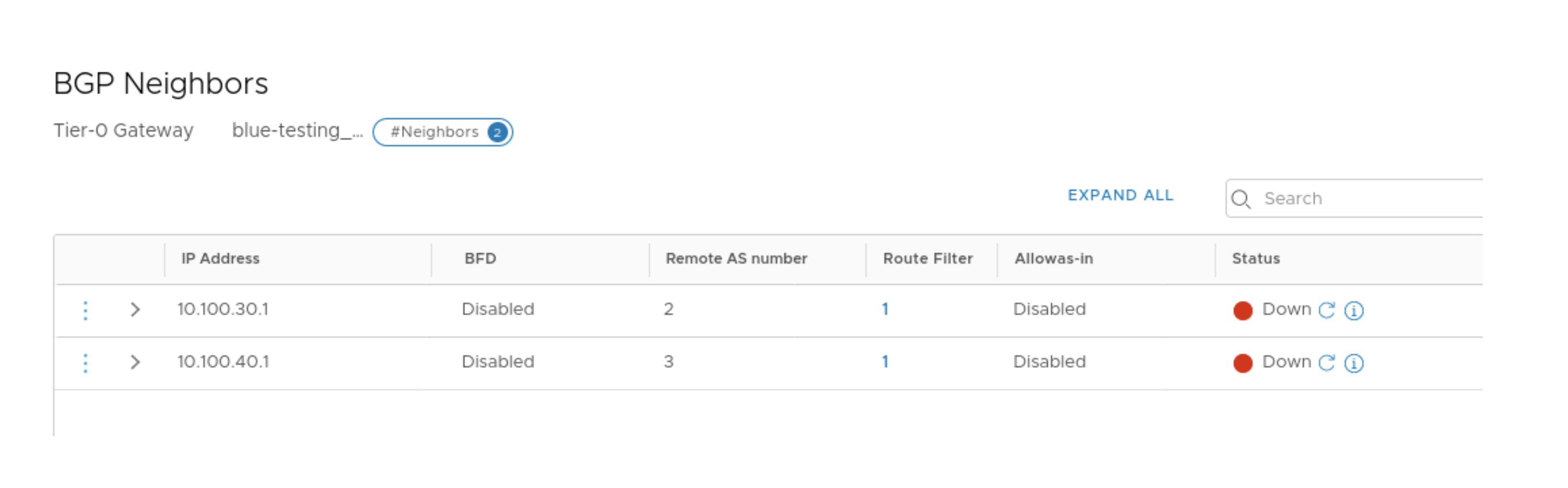 Let's say BGP neighborship from Tier-0 Gateway in NSX-T needs to be torn down towards
