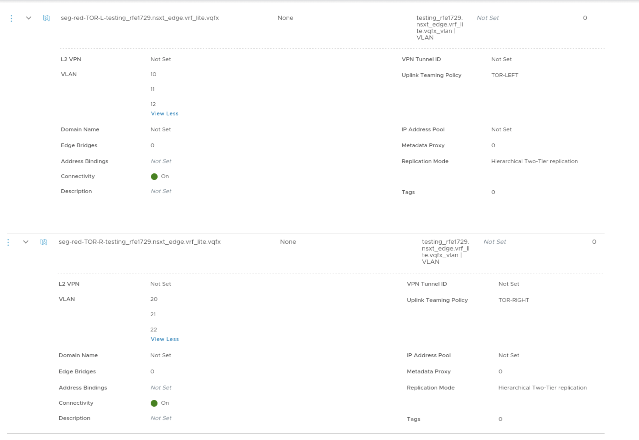 - In NSX-T Manager create the VLAN Segments for the Uplink networks for the