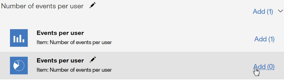 In this scenario, you want to add a pie chart view of the Events per user chart to the Miscellaneous metrics dashboard. By default, the dashboard displays the bar chart view.