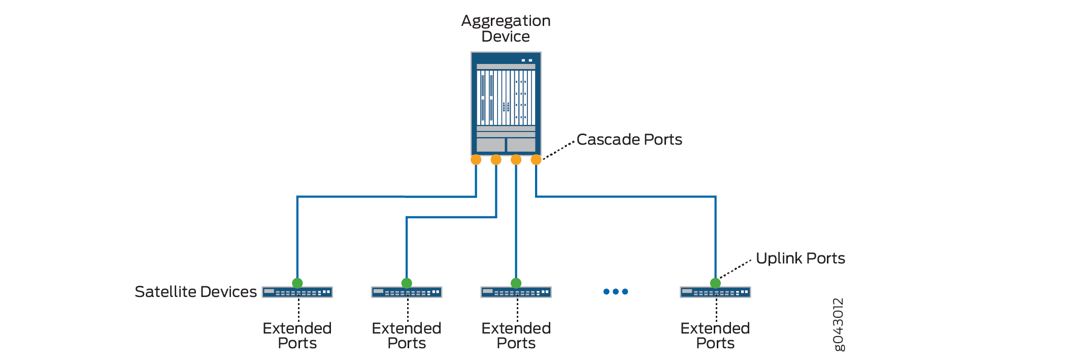 The link that connects an aggregation device to a satellite device has an interface on each end of the link. The interface on the aggregation device end of the link is a cascade port. The interface on the satellite device end of the link is an uplink port.