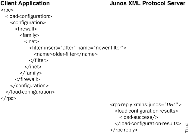 request. A client application first includes the tag elements described in Create, Modify, or Delete Configuration Elements Using the Junos XML Protocol. When using Junos XML format, the application emits the tag or container tag that