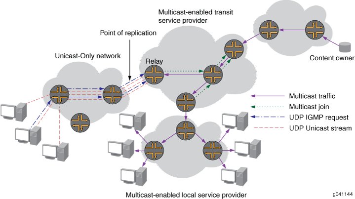 Transit service providers have a challenge in the Internet because many local service providers are not multicast-enabled. The challenge is how to entice content owners to transmit video and other multicast traffic across their backbones. The cost model for the content owners might be prohibitively high if they have to pay for unicast streams for the majority of their subscribers.