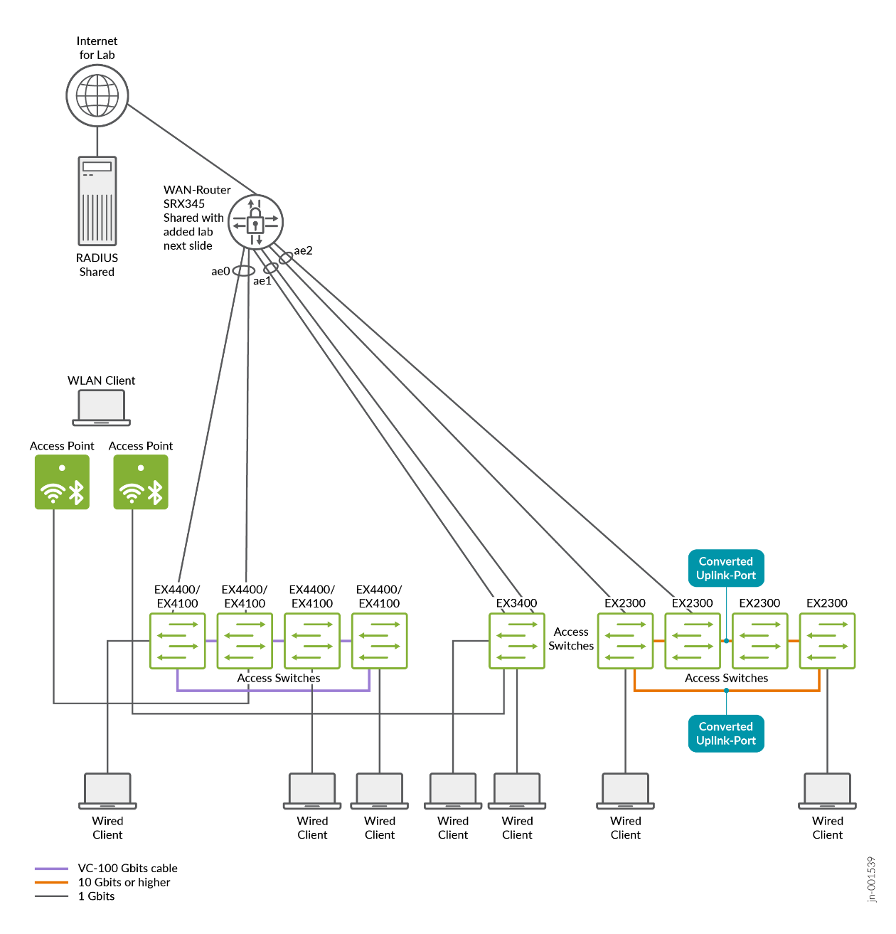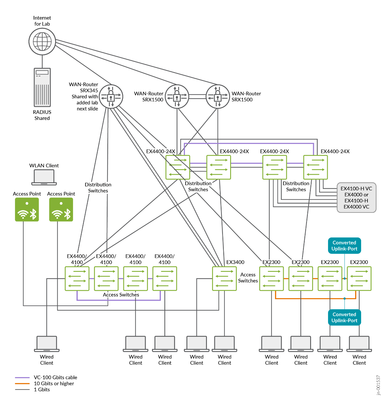 - One four-member Virtual Chassis access switch based on Juniper Networks® EX2300 Switch.