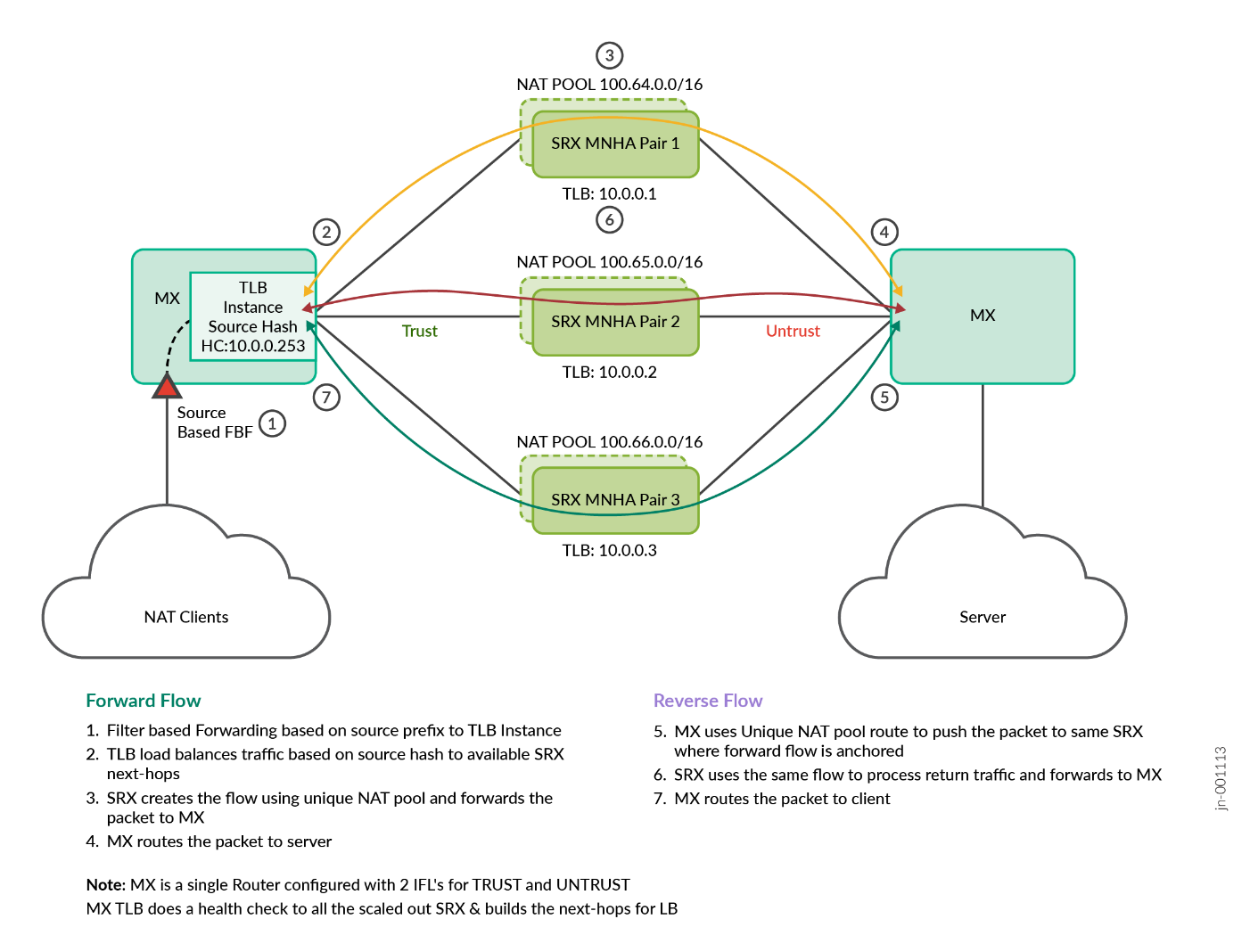 routing-instance srx_mnha_group_tlb-untrust_fi; ### Forwarding instance used by TLB