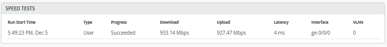 From the Juniper Mist portal, you can run a speed test for a Session Smart Router deployed as a WAN Edge on your network. Speed tests come in handy, for example, when: