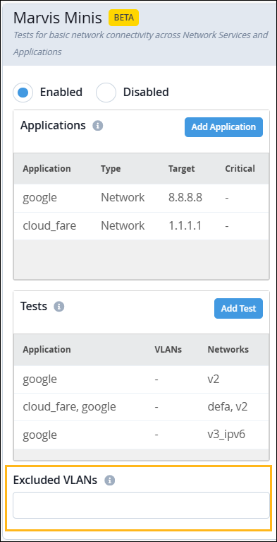 You can add a list of all the VLANs for which you do not want Marvis Minis to run an