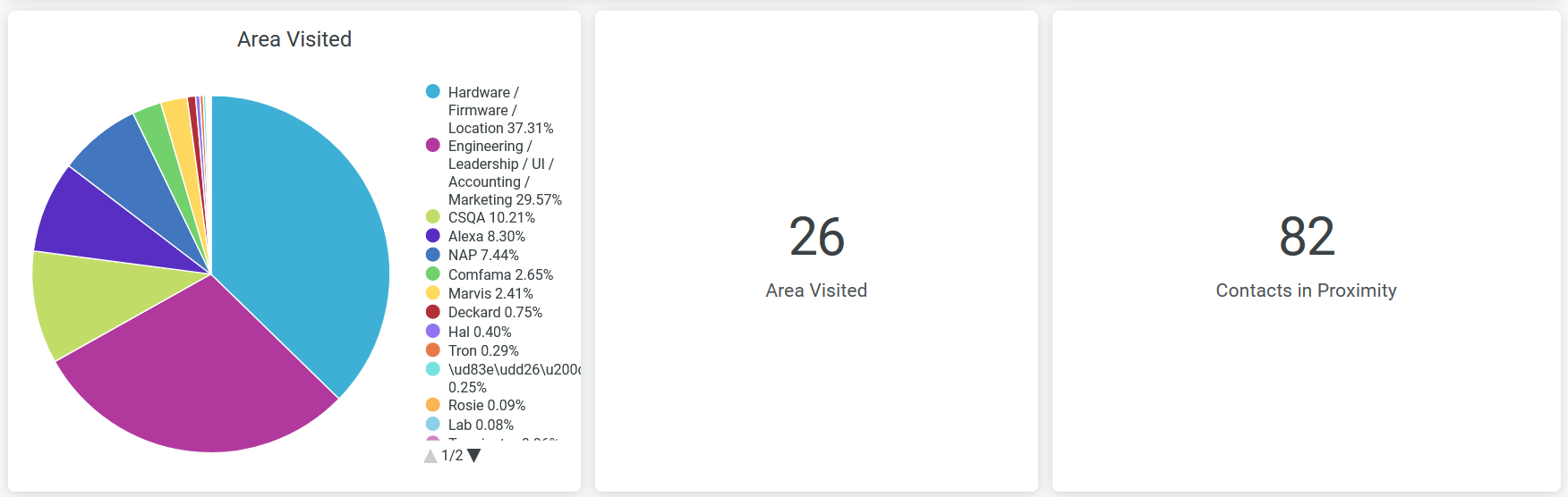 You can see the count of areas that have visitors and the number of visitors in proximity.