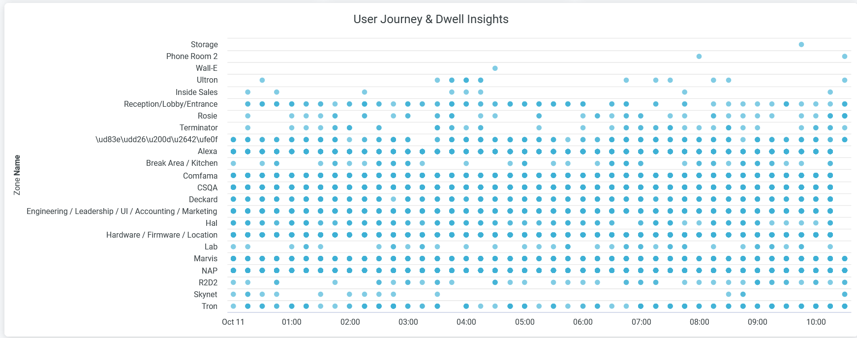 When you hover over the chart, you see a pop-up message with the occupancy status of a particular zone with time stamps.