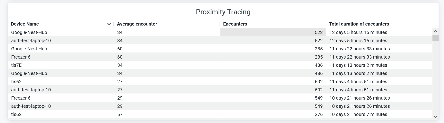 - Average Encounter—Average number of times the device is within the proximity zone.