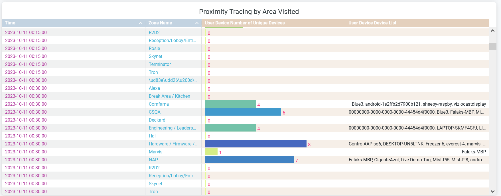 - Number of Unique Devices—Number of unique devices present in the proximity zone.