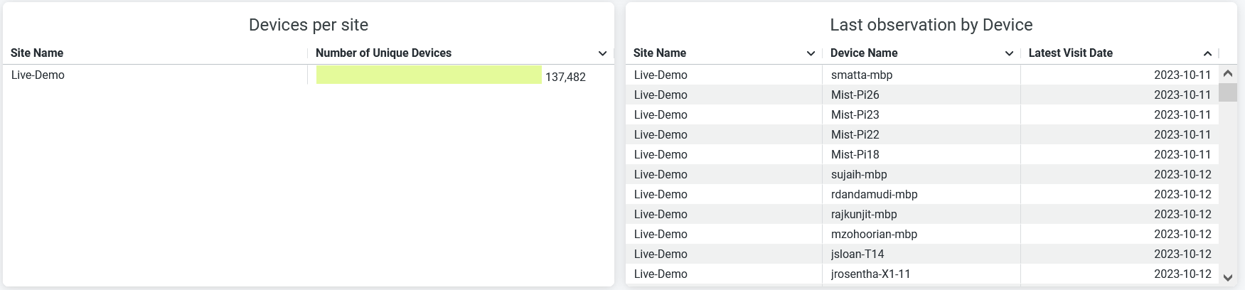 - Device Per Site and Last Observation by Device