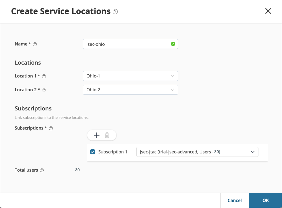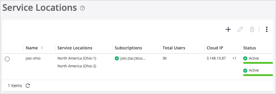 A service location in Juniper Security Director Cloud is also known as POP (point of presence) and represents a Juniper® Secure Edge instance in a cloud location. The service location is the connection (access) point for both on-premises and roaming users.