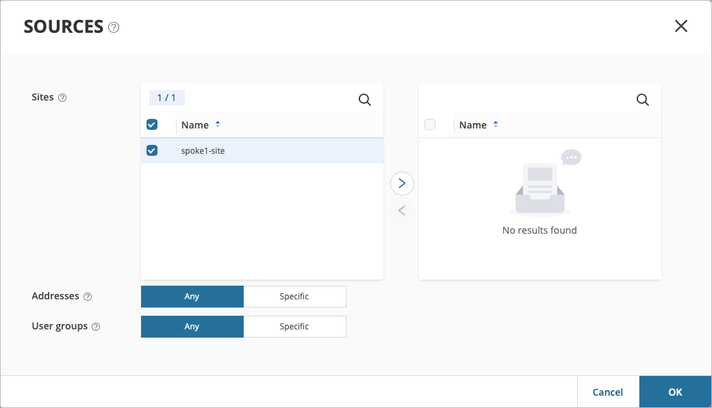 Overlapping branch addresses are not supported to the same POP within Secure Edge when using a stateful firewall at branch locations. Reverse path traffic to these overlapping IPs will be routed using equal-cost multipath (ECMP) across all connections. Traffic is routed using ECMP rather than per-session routing to the interface from which traffic originated. Consider reverse path traffic through ECMP when you configure the protected networks for a site.