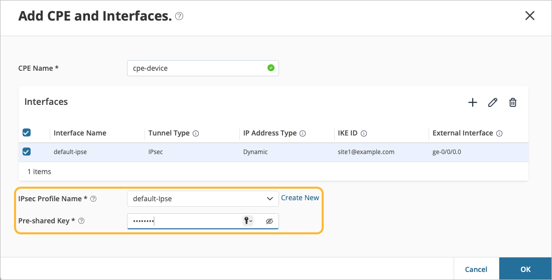 IPsec profiles define the parameters with which an IPsec tunnel is established when the WAN edge devices on your Juniper Mist™ cloud network start communicating with your Secure Edge instance.