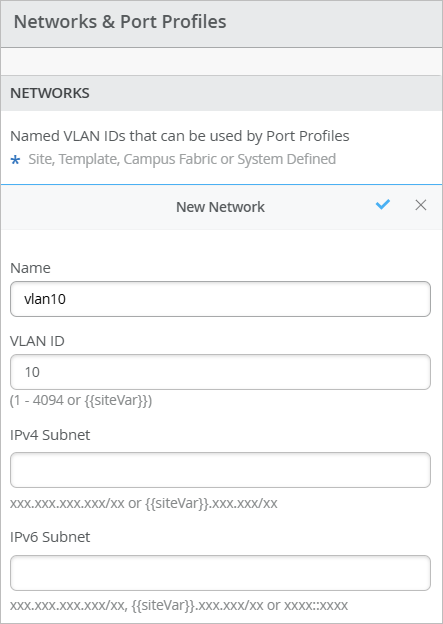 Click the check mark at the upper right of the New Network window to save the configuration.